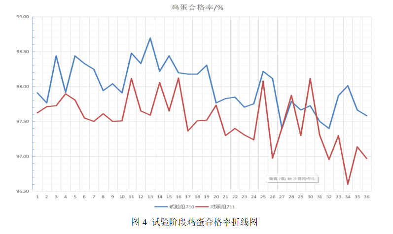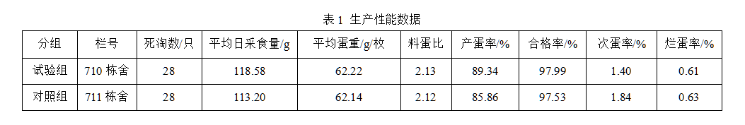 由表1可看出,,,,与对照组相比,,试验组的蛋鸡平均日采食量、、、平均蛋重、、、、产蛋率和鸡蛋合格率分别提高了4.75%、、0.13%、、、、4.05%和0.47%;次蛋率和烂蛋率分别降低了23.91%和3.17%。。说明在日粮中添加凯时尊龙宁(蛋禽用型)400g/T可明显改善罗曼灰蛋鸡夏季高温应激现象,,,提高其生产性能。。。。