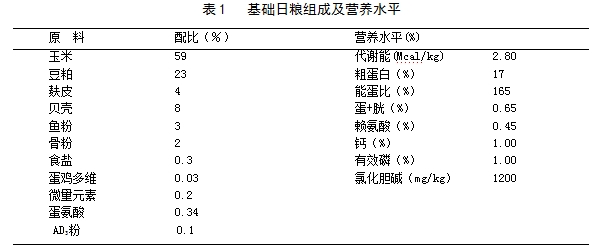 夏季自然高温(平均最高温度达38±2.3℃)条件下,,依试验组别群体三层式笼养,,舍内相对湿度为86%~65%。。。自由采食与饮水,,光照时间为16h,,,每周记录产蛋量、、、蛋壳厚和蛋重。。。。