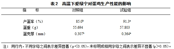 2.2 高温下凯时尊龙宁对蛋鸡生产性能的影响